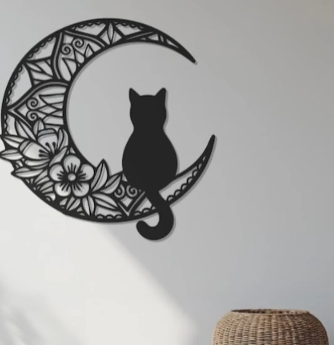 Decorazione gatto sulla luna da parete.
