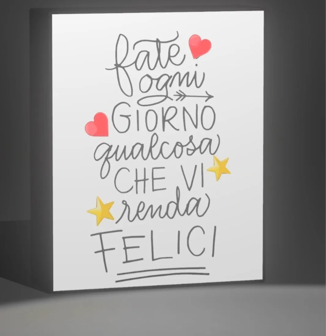 LIGHT BOX con frase "fate ogni giorno qualcosa che vi renda felici".
